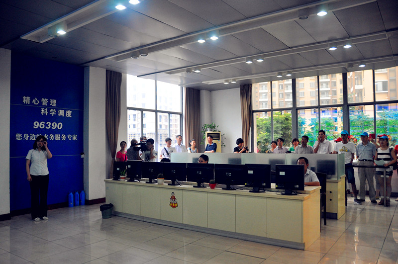 參觀者們在供水公司調度中心聽取全區供水調度情況匯報